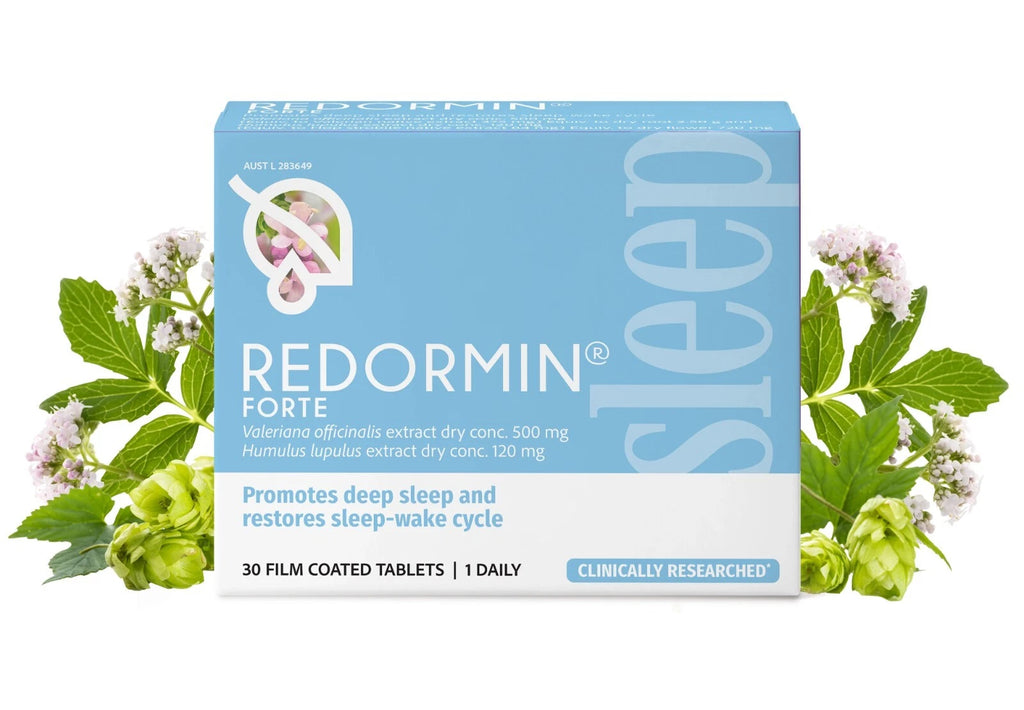 Redormin Forte contains a blend of Valerian root and Hops, traditionally used in Western herbal medicine to support restful sleep and assist with maintaining healthy sleep patterns.