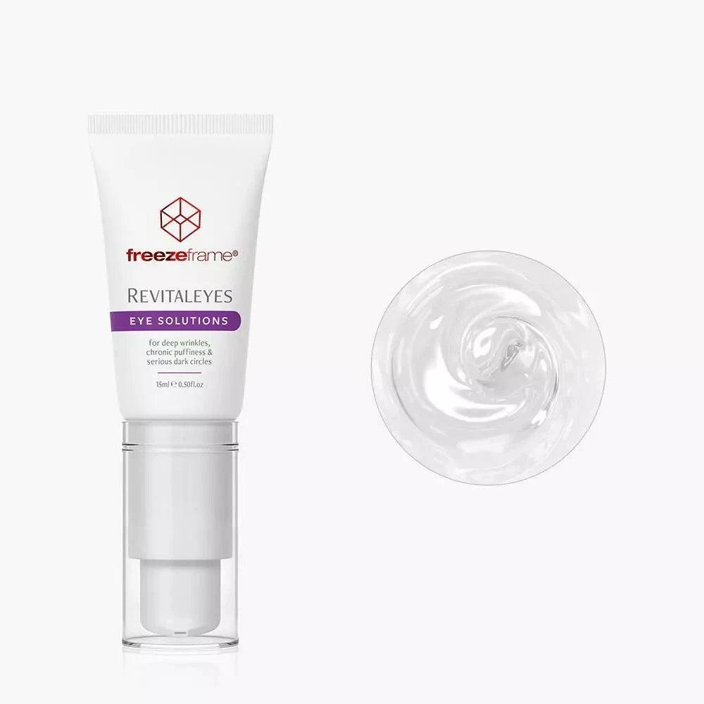 - freezeframe revitalEYES with tri peptide and vitamin C. An effect you will see immediately, and a dramatic long term effect on all major signs of eye ageing that will defy your age.