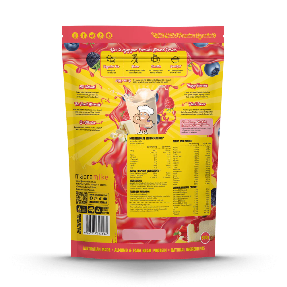 Macro Mike Premium Almond Protein Mixed Berry White Choc Cheezecake 800g