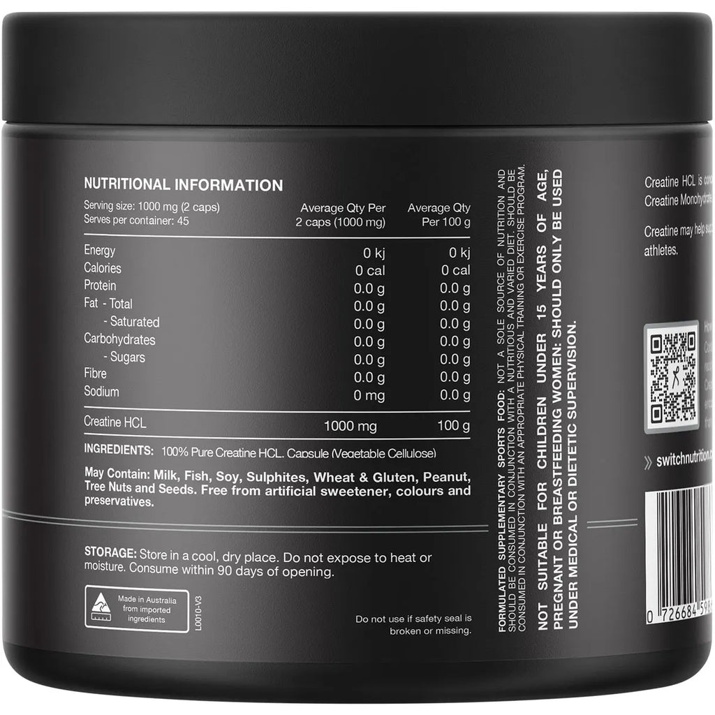 Switch Nutrition Creatine 90 Capsules 100% Pure Creatine HCL