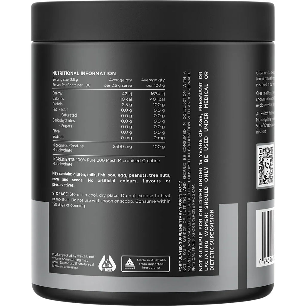 Switch Nutrition Creatine Unflavoured 250g 100% Pure Micronised Creatine Monohydrate