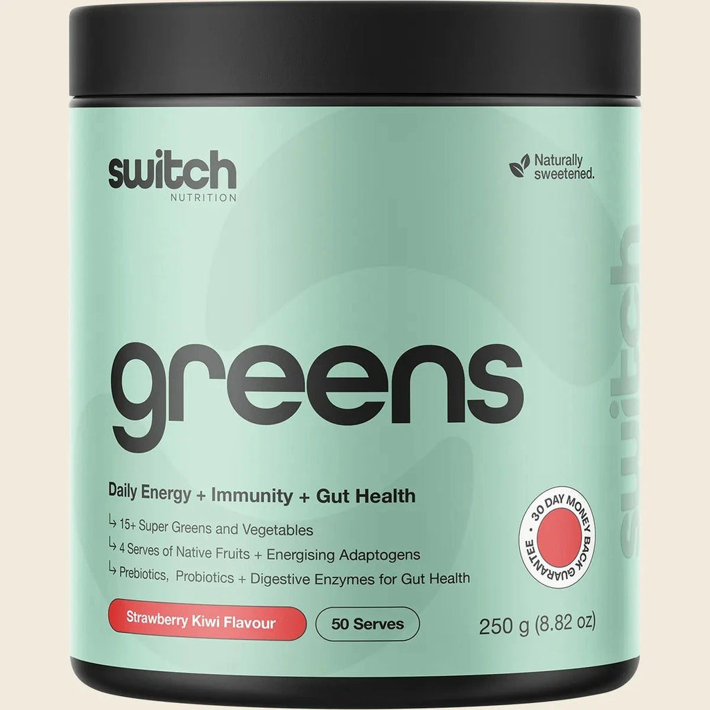 Switch Nutrition Greens Strawberry Kiwi Daily Energy + Immunity + Gut Health 250g