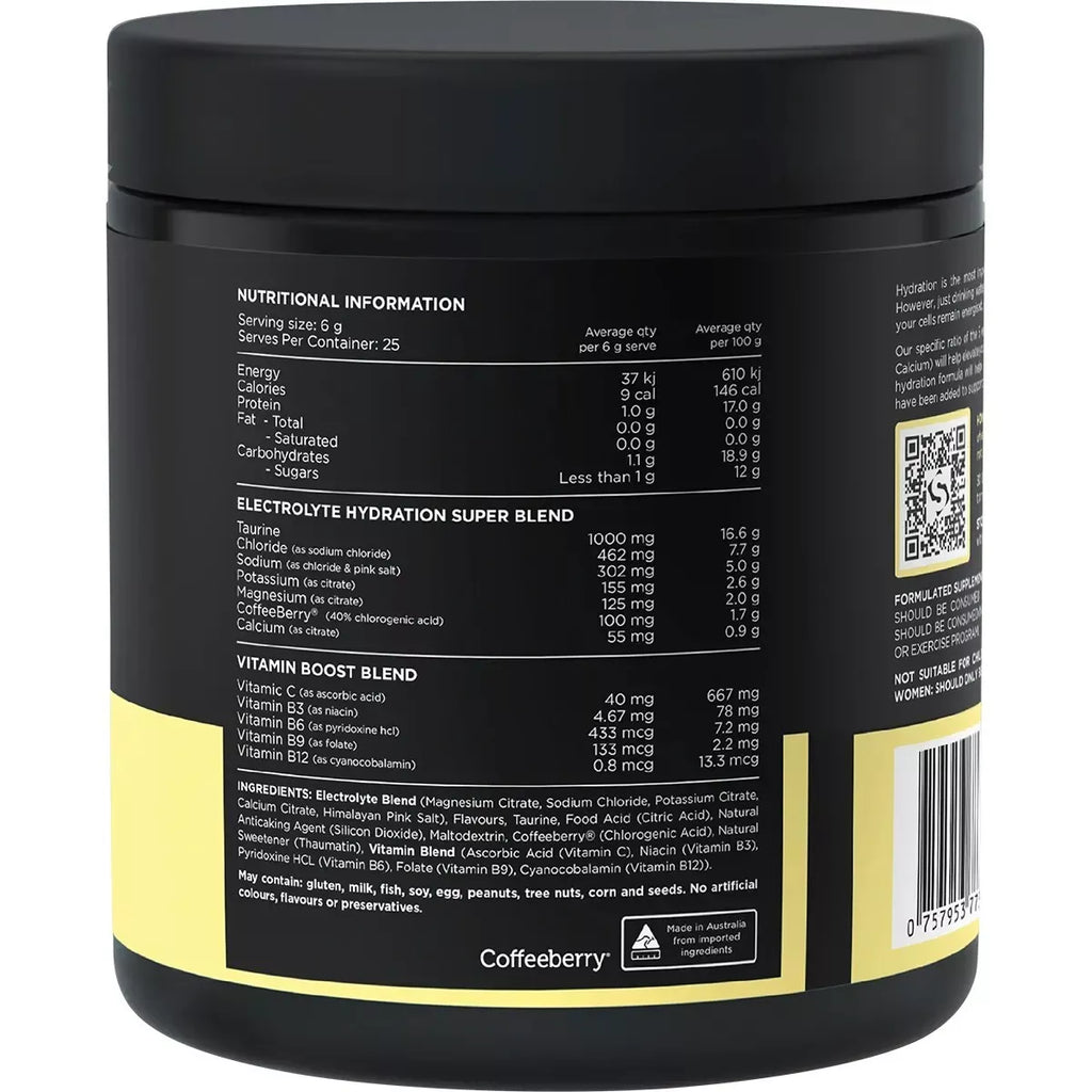 Hydration is essential for maintaining health, energy, mental clarity, recuperation, and peak performance. Hydrate Switch is designed to optimise your hydration and help you excel by offering a carefully crafted mix of Vitamins, Minerals, and Amino Acids. This includes a complete range of vital electrolytes and a balanced 2:1 Sodium to Potassium ratio.